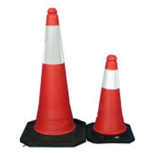 PVC TRAFFIC CONE 750MM WITH REFLECTIVE TAPE & BLACK RUBBER BASE (EACH)